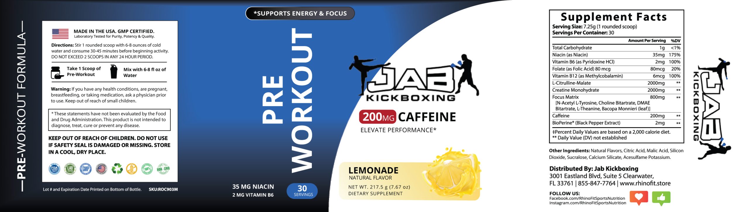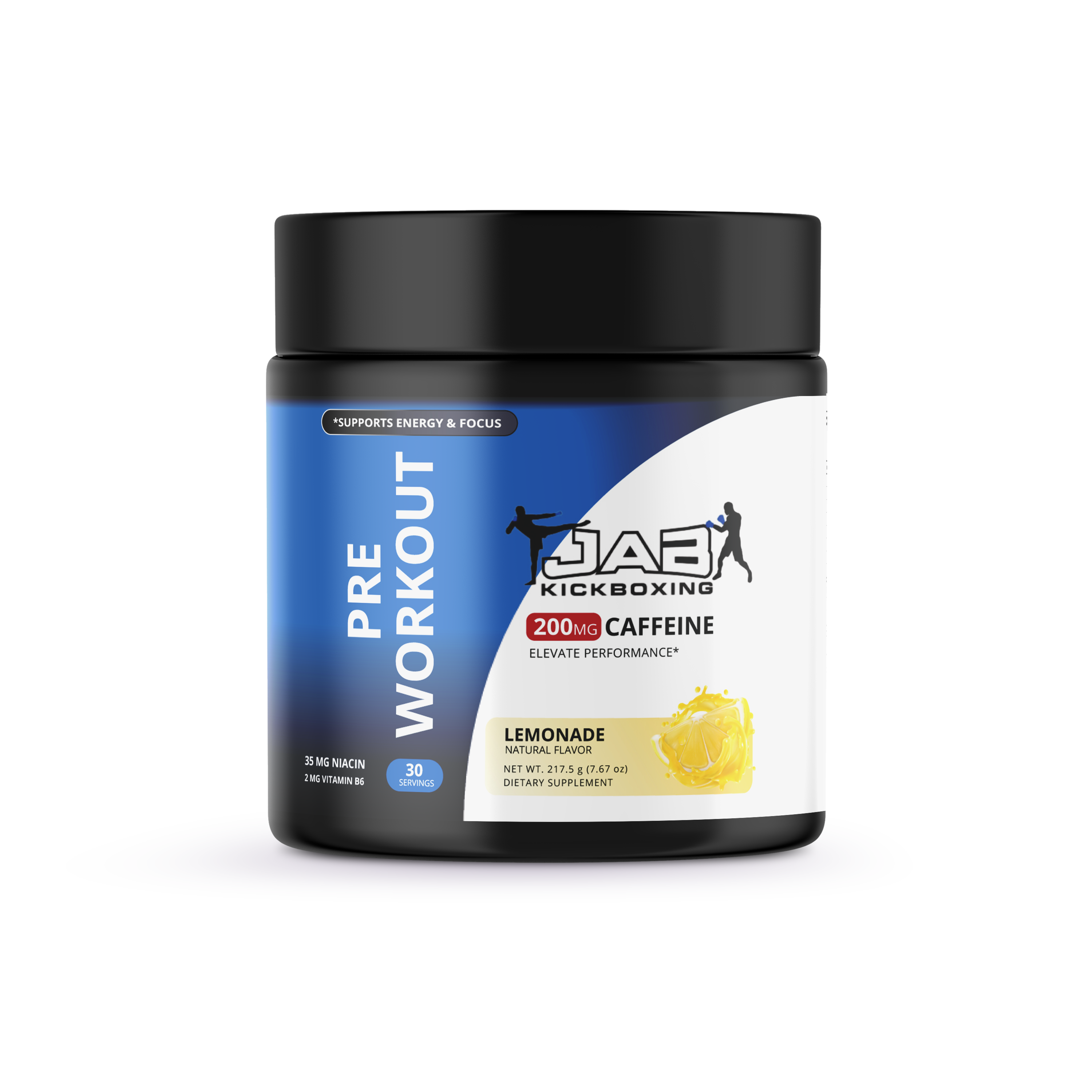 Jab Kickboxing’s Pre-Workout Lemonade is synthesized to improve exercise performance, increase muscle protein synthesis, prevent muscle tissue breakdown, increase energy, increase cognition, enhance your pump, and take your workouts to the next level!
